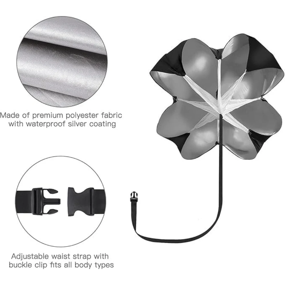 | المواصفات | براشوت تدريب السرعة – 22×18×8 سم مقاومة قوية: 15–33 باوند، مع مظلتين 30–66 باوند مناسب للجري وكرة القدم والسلة لزيادة السرعة والقدرة على التحمل حزام خصر قابل للتعديل مع دوران 360° ومشبك سريع الفك متين وسهل الحمل، مصنوع من قماش عالي الجودة مع شبكة لمنع التشابك ضمان استبدال أو استرداد المال إذا لم تكن راضيًا |