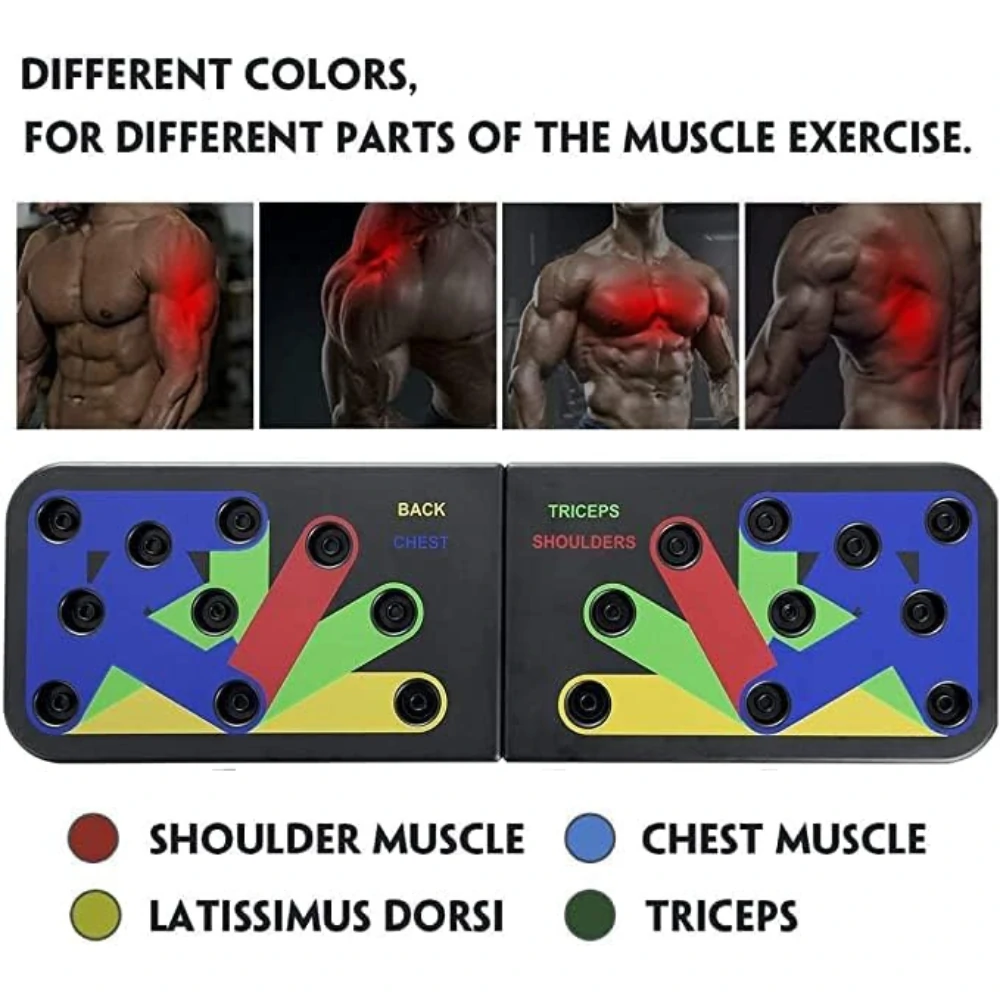 | المواصفات | بوش أب متعدد 12×1 المقاس: 63×18×7 سم اللون: أسود وظائف متعددة: نظام ملوّن لتدريب الجزء العلوي بالكامل أزرق: الصدر | أحمر: الأكتاف | أصفر: الظهر | أخضر: الترايسبس خامة متينة: بلاستيك ABS عالي الجودة مع قواعد مانعة للانزلاق قابل للطي وسهل التركيب: مقابض قابلة للفك والتخزين، مناسب للسفر تصميم فعّال: أوضاع وزوايا مختلفة لاستهداف العضلات بدقة مناسب للجميع: للمبتدئين والمحترفين، للتمرين في المنزل دون جيم |