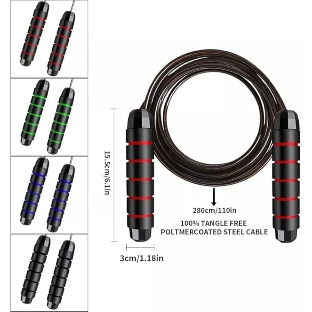 | المواصفات | حبل نط واير بالشنطة – لوكس الألوان: أحمر – أزرق – أسود الخامة: كيبل ستيل مطلي بـPVC متين وقابل للتعديل ليناسب جميع الأعمار. المميزات: محمل كرات عالي الجودة لتمارين قفز سلسة، مقابض إسفنجية مريحة ومضادة للانزلاق، قابلة للحمل بسهولة في أي مكان، مناسبة للمبتدئين والمحترفين على حد سواء. |