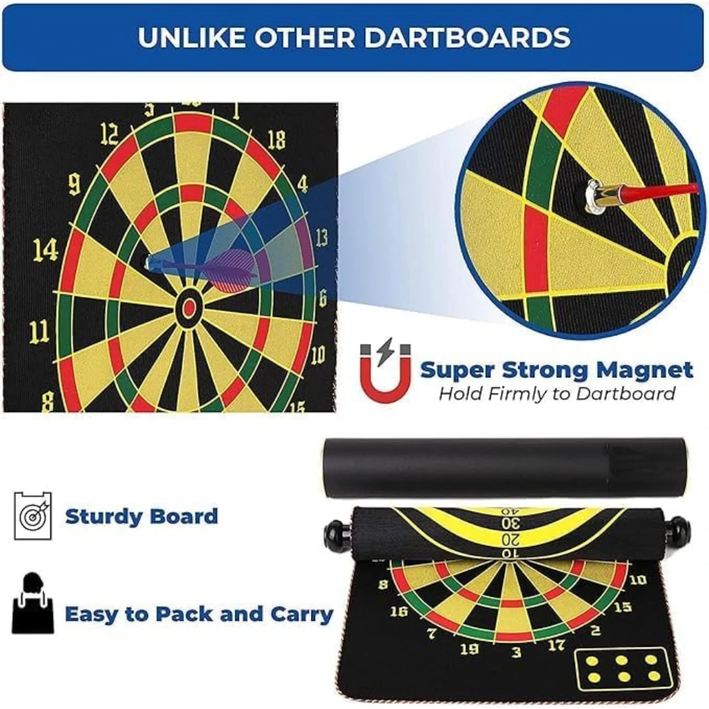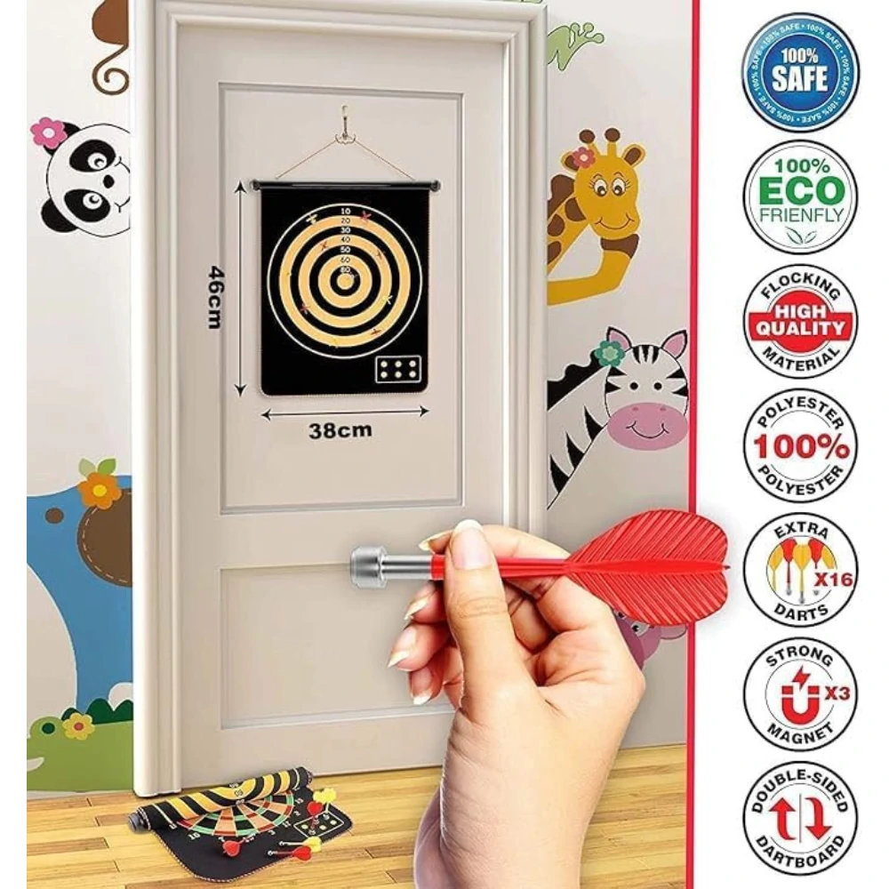 | المواصفات | لوحة نيشان مغناطيس المقاس: 50×30 سم اللون: أسود تصميم مزدوج: وجه نيشان تقليدي + وجه هدف لزيادة التنوع مغناطيس آمن: سهام مغناطيسية تثبت بدون تلف للجدران المجموعة: 6 سهام (3 أحمر – 3 أصفر) + أدوات تعليق محمولة وسهلة التركيب: خفيفة وبحبل تعليق مناسبة للعائلة: آمنة لجميع الأعمار وللاستخدام المنزلي والترفيهي |